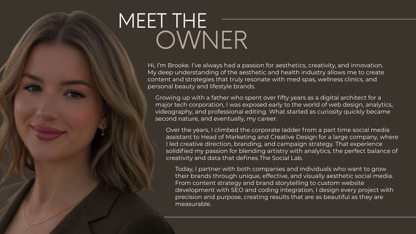 The Social Lab is a creative marketing studio specializing in beauty, health, and lifestyle brands. We combine strategy, design, and social storytelling to help modern brands grow with intention.